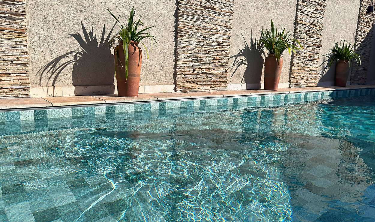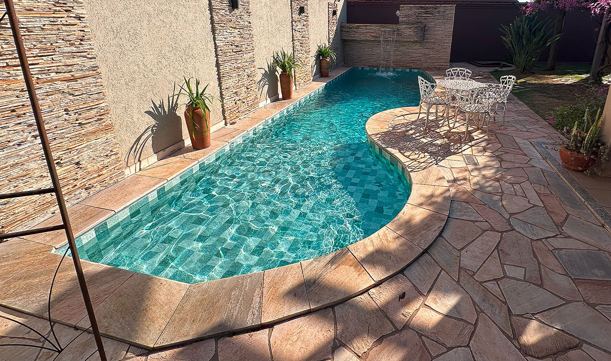 Em piscinas retas e em esquadro, prefira estampas maiores para melhor acabamento.